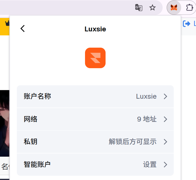 在Chorme扩展中安装”Metamask”插件,登录后显示界面,此时钱包内ETH数为0,需要通过复制以太坊钱包地址字符串,进行交易或获取;