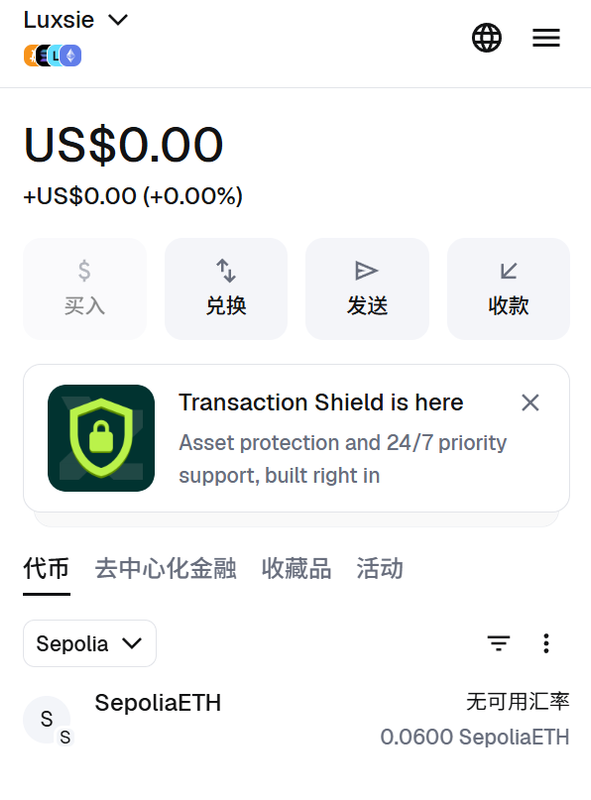返回钱包绑定sepolia后,发现此时ETH已经补充,鉴于合约部署通常gas开销较低,因此基于本次实践的项目体量,可以基于此直接先开展部署。