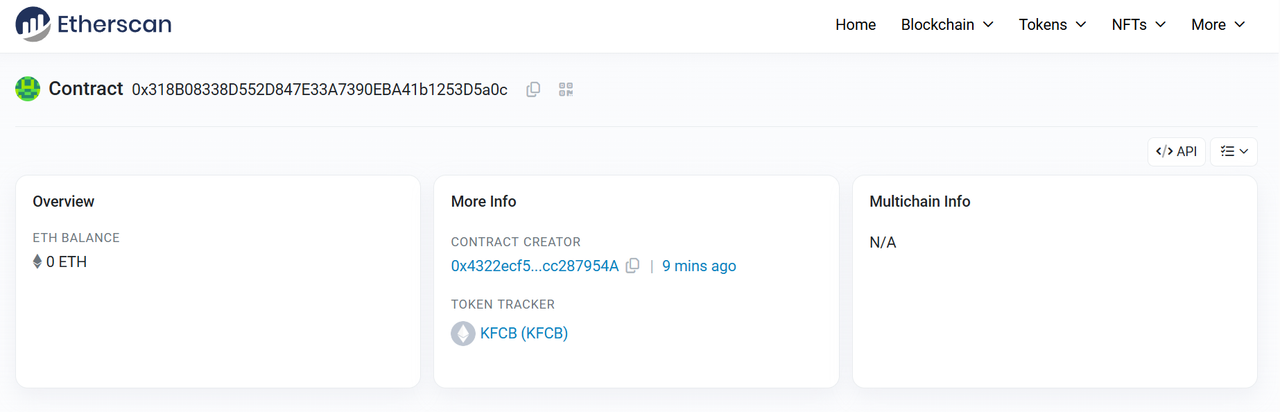 在Etherscan中搜索代币A的合约地址,进入代币A的合约界面,点击