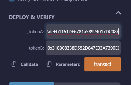 基于以上,我们部署一个面向区块链生态的安全增强型去中心化交易所(DEX)智能合约,基于Uniswap V2架构开发,针对当前DEX生态中以上列出的风险集成多重安全机制,实现交易安全性与市场效率的平衡。合约以Solidity 0.8.20为开发语言,依托OpenZeppelin安全组件构建权限控制,防重入等安全层,为去中心化交易提供可验证的安全保障。在部署阶段输入前文中部署的两个代币合约地址,之后顺利生成。